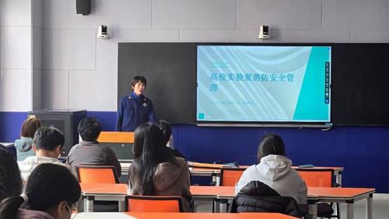培训会上,姚警官结合高校实验室特点,系统梳理了实验室火灾风险。她重点分析了电气设备故障、电源电器陈旧等主要致灾因素,并强调了“预防为主,防消结合”的重要性。通过对《中华人民共和国消防法》、《高等学校消防安全管理规定》等法规的解读,姚警官详细阐述了实验室消防安全责任体系的构建,明确了从责任人到每一位师生在安全管理中的职责,为筑牢校园安全防线奠定了坚实的理论基础。